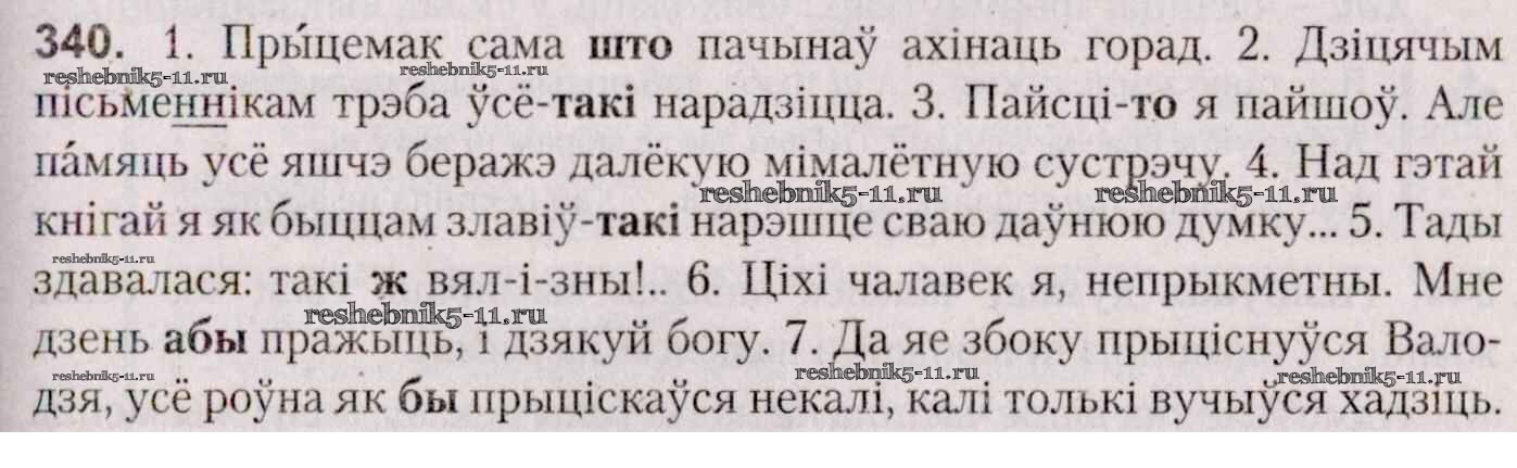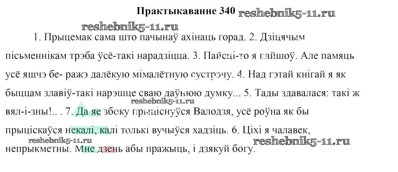 Готовая домашняя работа с ответами по Белорусскому языку за 7 класс Валочка, Язерская Учебник Национальный институт образования 2020 ФГОС - Практыкаванні 340