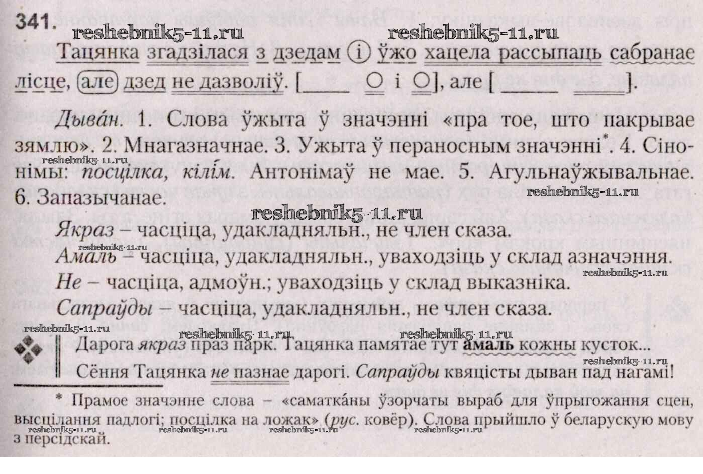Готовая домашняя работа с ответами по Белорусскому языку за 7 класс Валочка, Язерская Учебник Национальный институт образования 2020 ФГОС - Практыкаванні 341