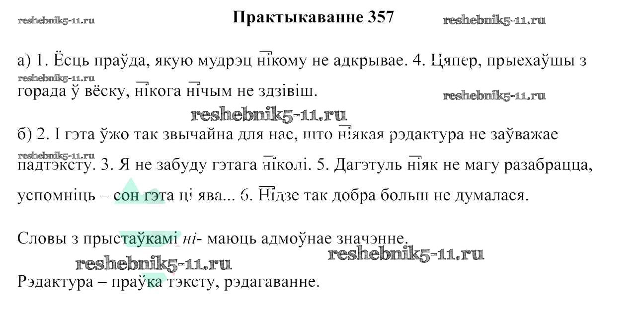 Готовая домашняя работа с ответами по Белорусскому языку за 7 класс Валочка, Язерская Учебник Национальный институт образования 2020 ФГОС - Практыкаванні 357
