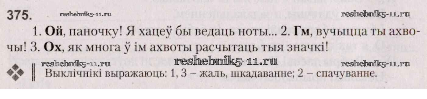 Готовая домашняя работа с ответами по Белорусскому языку за 7 класс Валочка, Язерская Учебник Национальный институт образования 2020 ФГОС - Практыкаванні 375