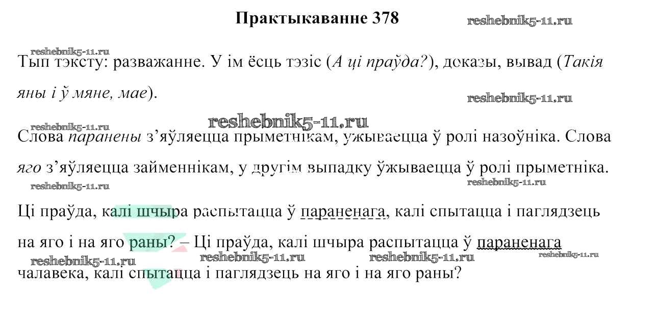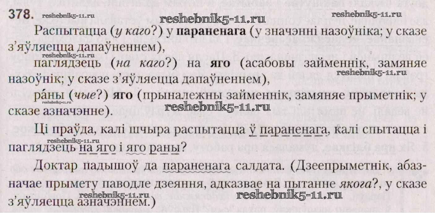 Готовая домашняя работа с ответами по Белорусскому языку за 7 класс Валочка, Язерская Учебник Национальный институт образования 2020 ФГОС - Практыкаванні 378