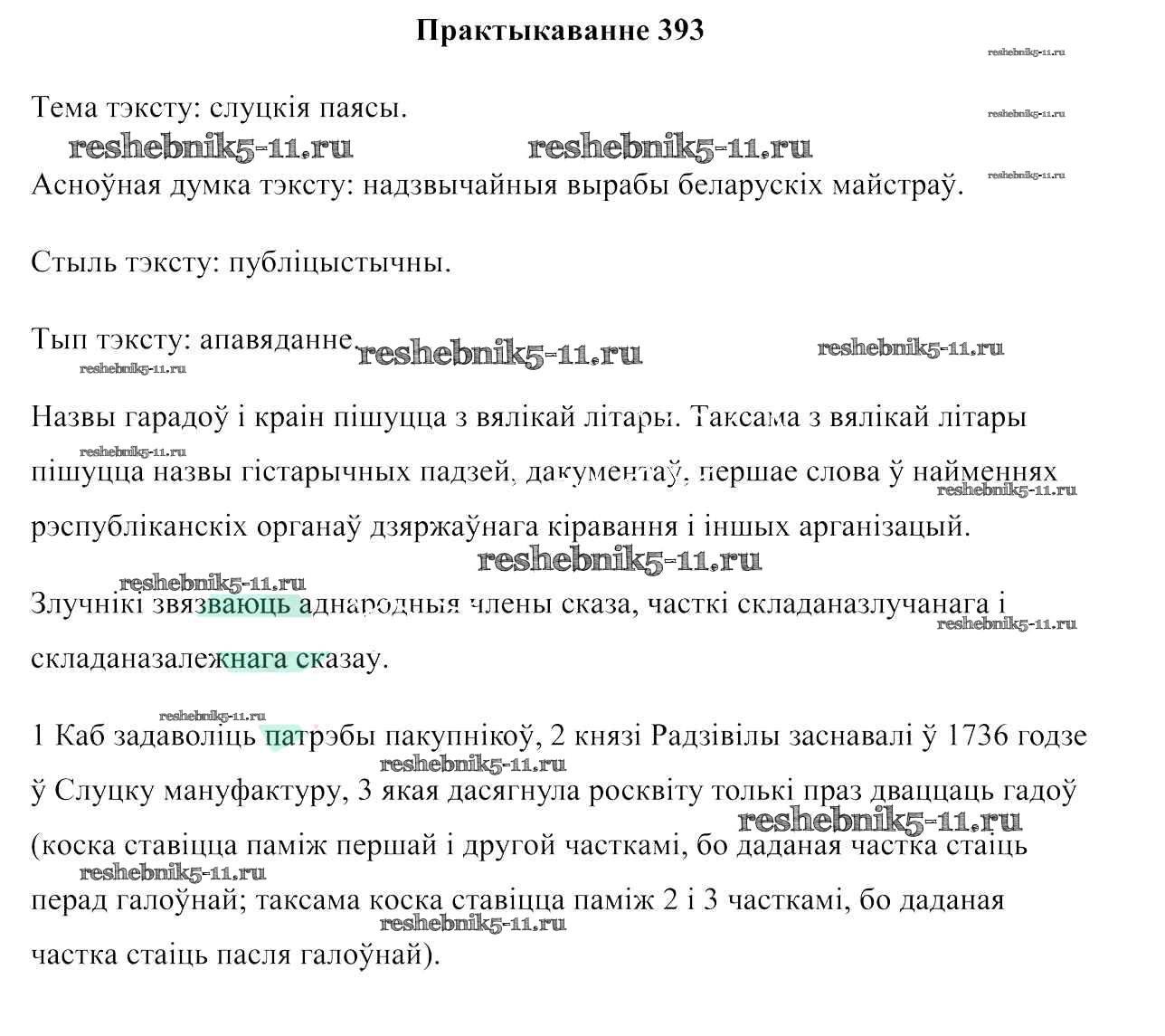 Готовая домашняя работа с ответами по Белорусскому языку за 7 класс Валочка, Язерская Учебник Национальный институт образования 2020 ФГОС - Практыкаванні 393