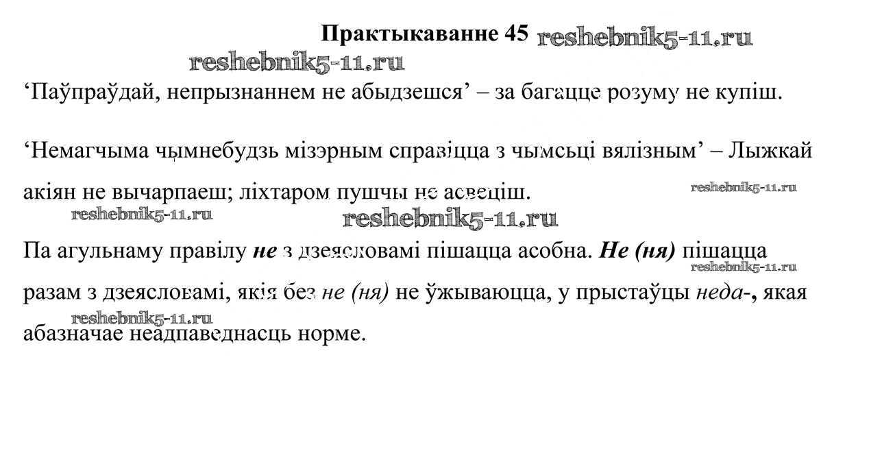 Готовая домашняя работа с ответами по Белорусскому языку за 7 класс Валочка, Язерская Учебник Национальный институт образования 2020 ФГОС - Практыкаванні 45