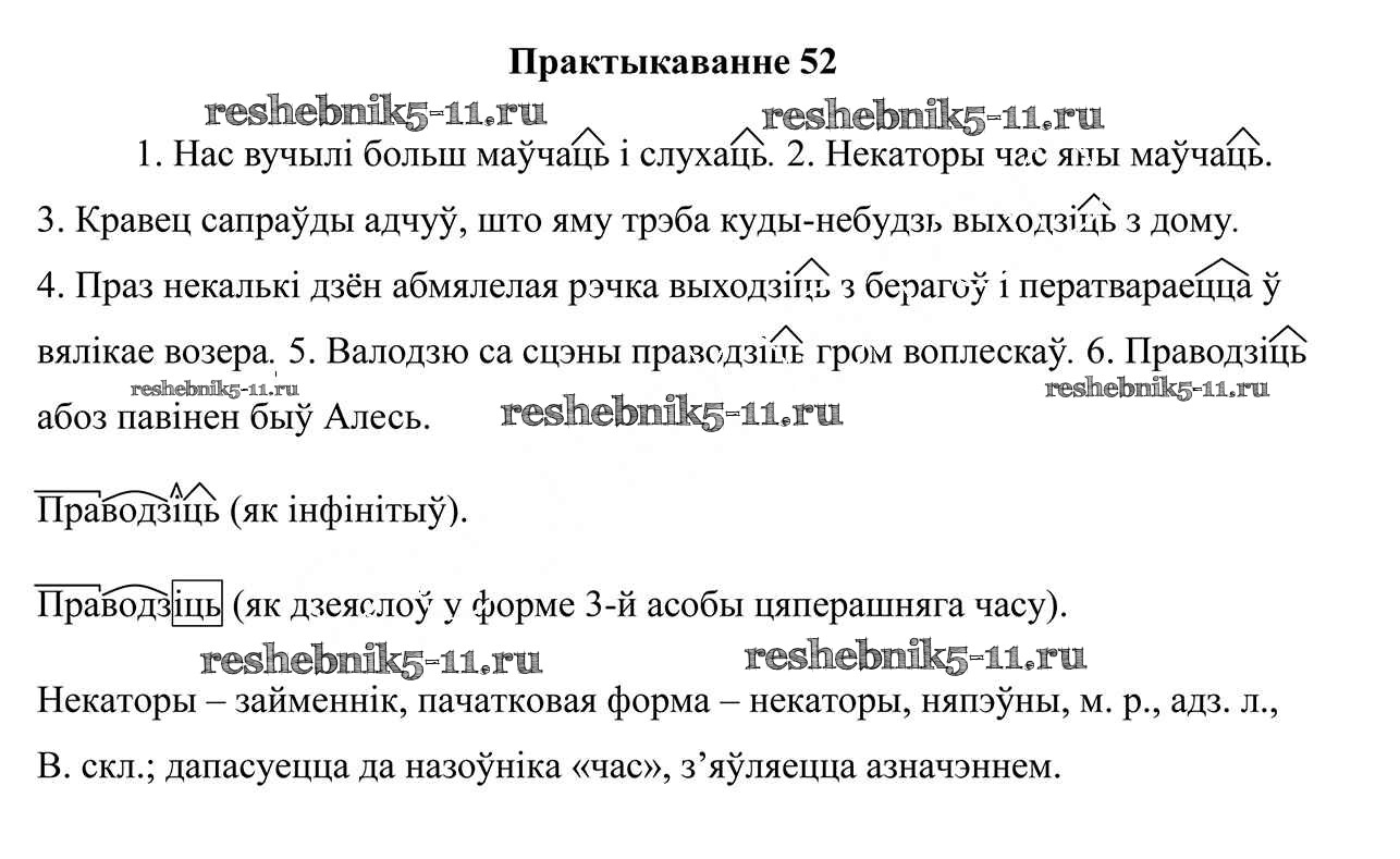 Готовая домашняя работа с ответами по Белорусскому языку за 7 класс Валочка, Язерская Учебник Национальный институт образования 2020 ФГОС - Практыкаванні 52