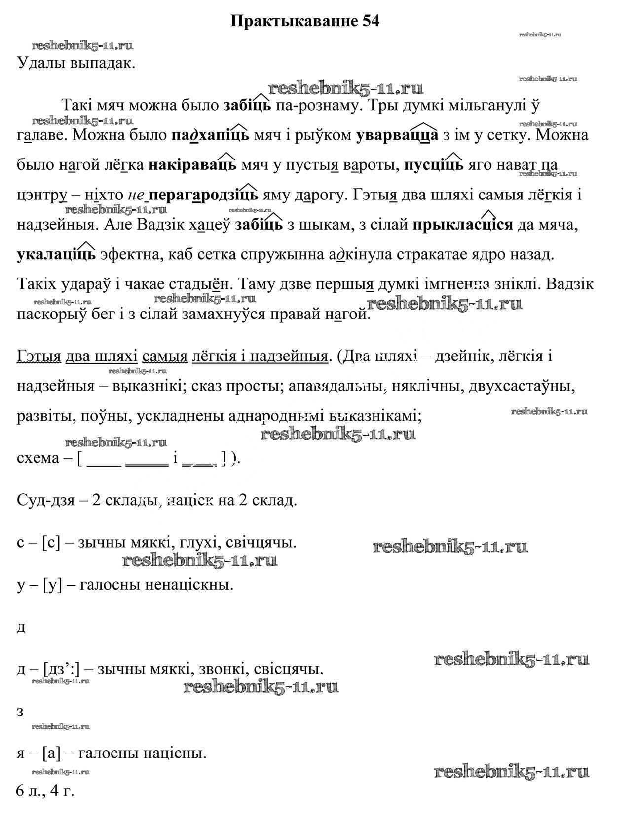 Готовая домашняя работа с ответами по Белорусскому языку за 7 класс Валочка, Язерская Учебник Национальный институт образования 2020 ФГОС - Практыкаванні 54