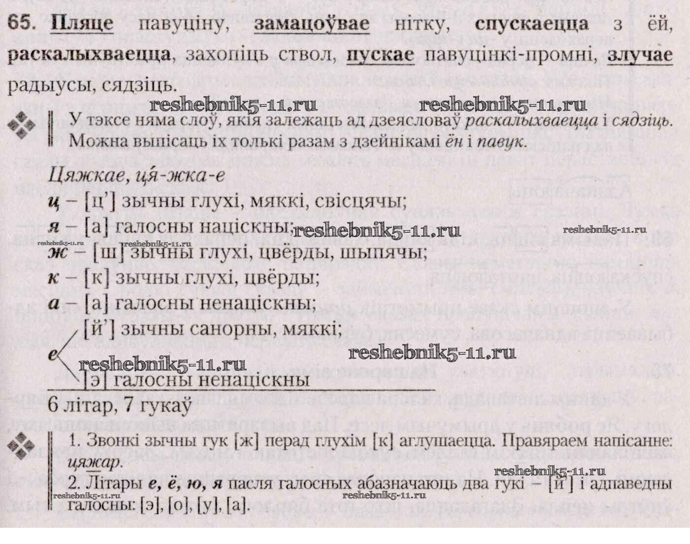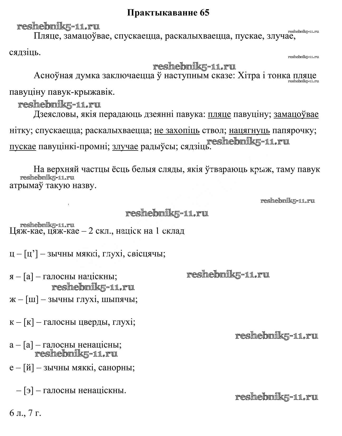 Готовая домашняя работа с ответами по Белорусскому языку за 7 класс Валочка, Язерская Учебник Национальный институт образования 2020 ФГОС - Практыкаванні 65