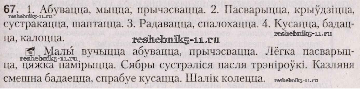 Готовая домашняя работа с ответами по Белорусскому языку за 7 класс Валочка, Язерская Учебник Национальный институт образования 2020 ФГОС - Практыкаванні 67