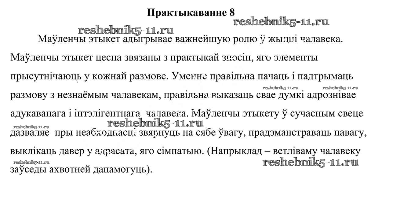 Готовая домашняя работа с ответами по Белорусскому языку за 7 класс Валочка, Язерская Учебник Национальный институт образования 2020 ФГОС - Практыкаванні 8