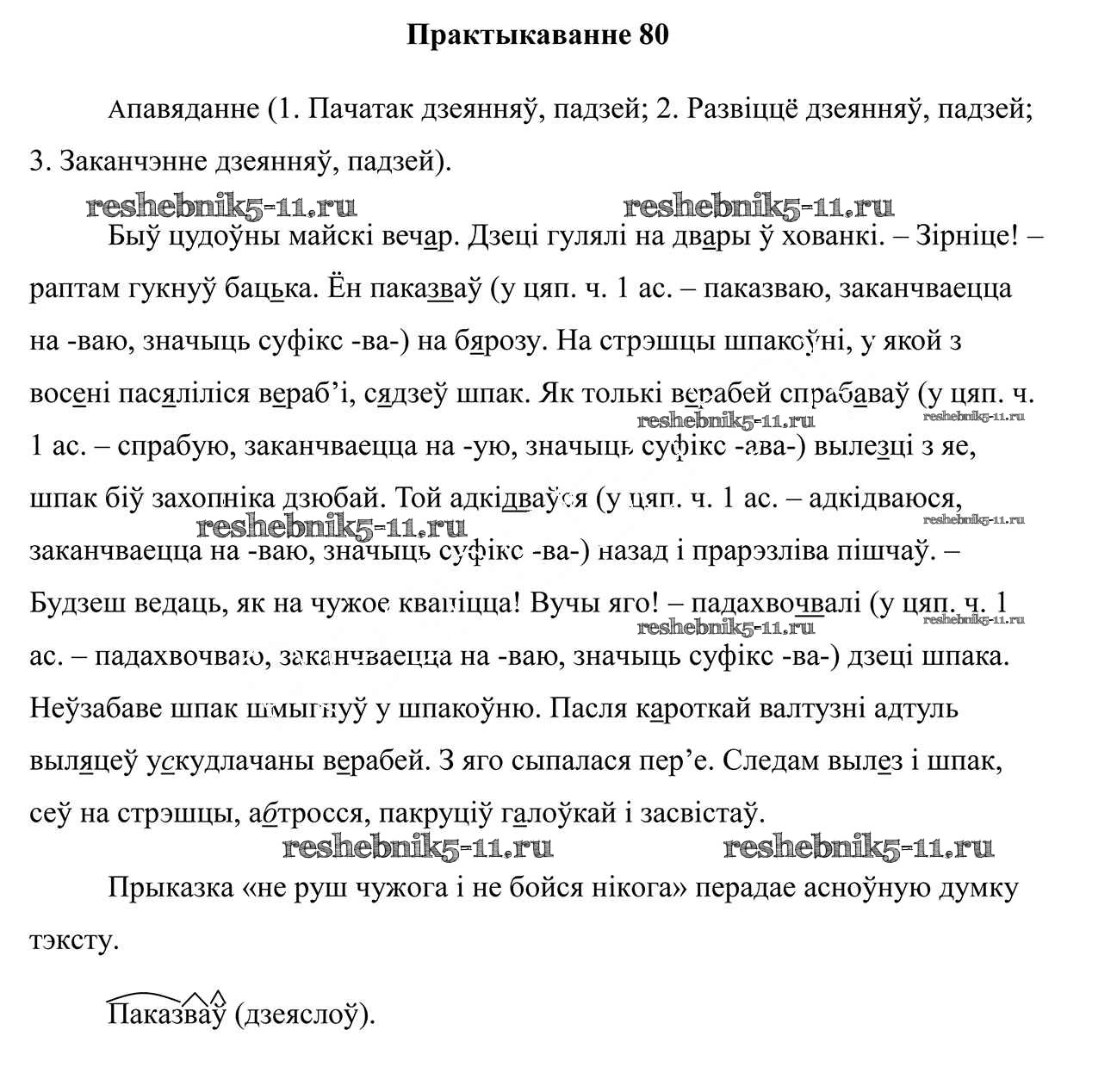 Готовая домашняя работа с ответами по Белорусскому языку за 7 класс Валочка, Язерская Учебник Национальный институт образования 2020 ФГОС - Практыкаванні 80
