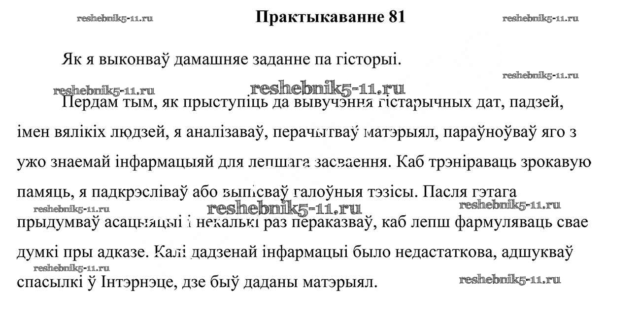 Готовая домашняя работа с ответами по Белорусскому языку за 7 класс Валочка, Язерская Учебник Национальный институт образования 2020 ФГОС - Практыкаванні 81
