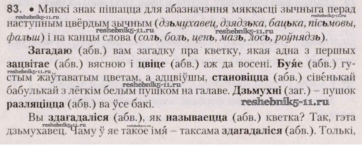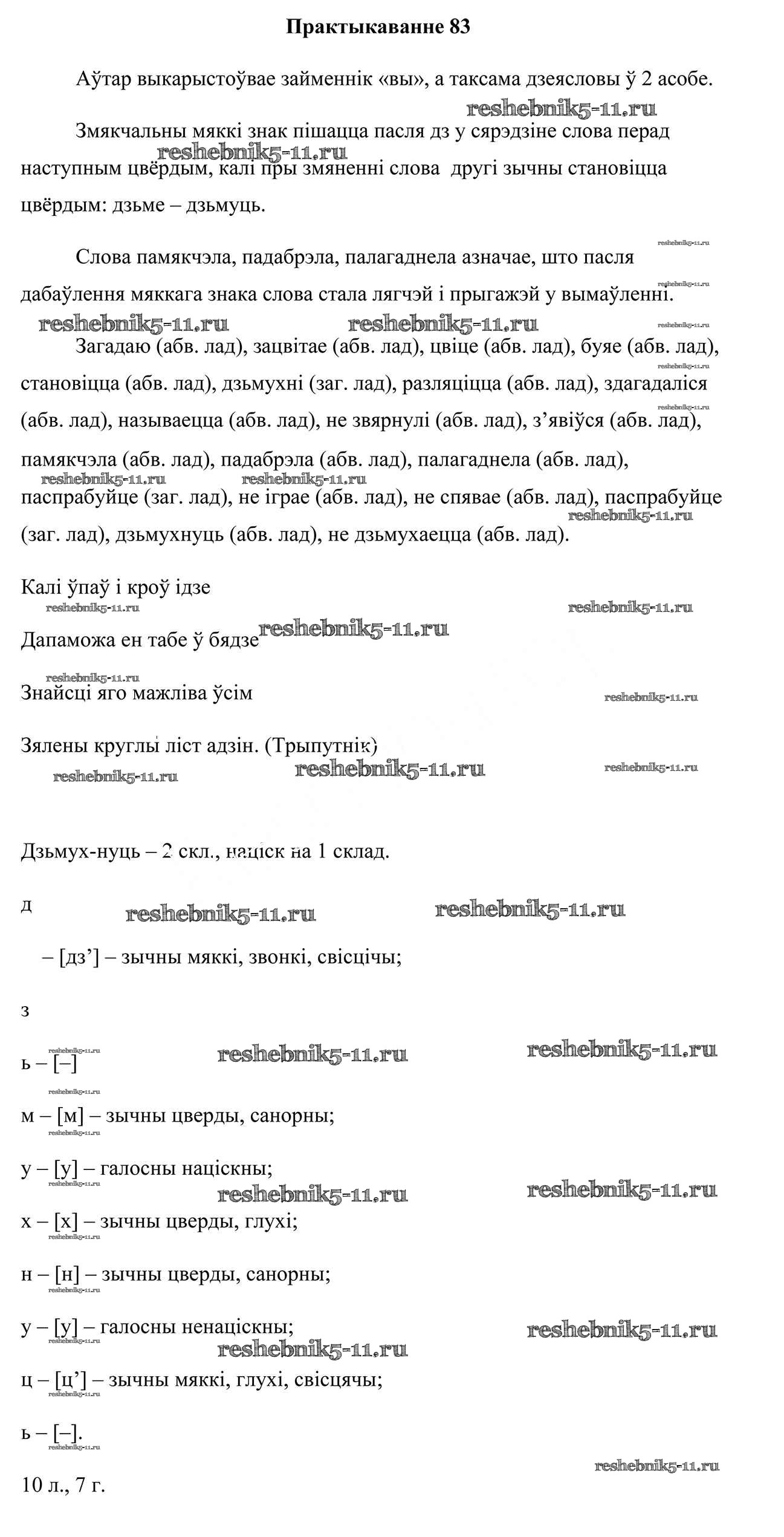 Готовая домашняя работа с ответами по Белорусскому языку за 7 класс Валочка, Язерская Учебник Национальный институт образования 2020 ФГОС - Практыкаванні 83