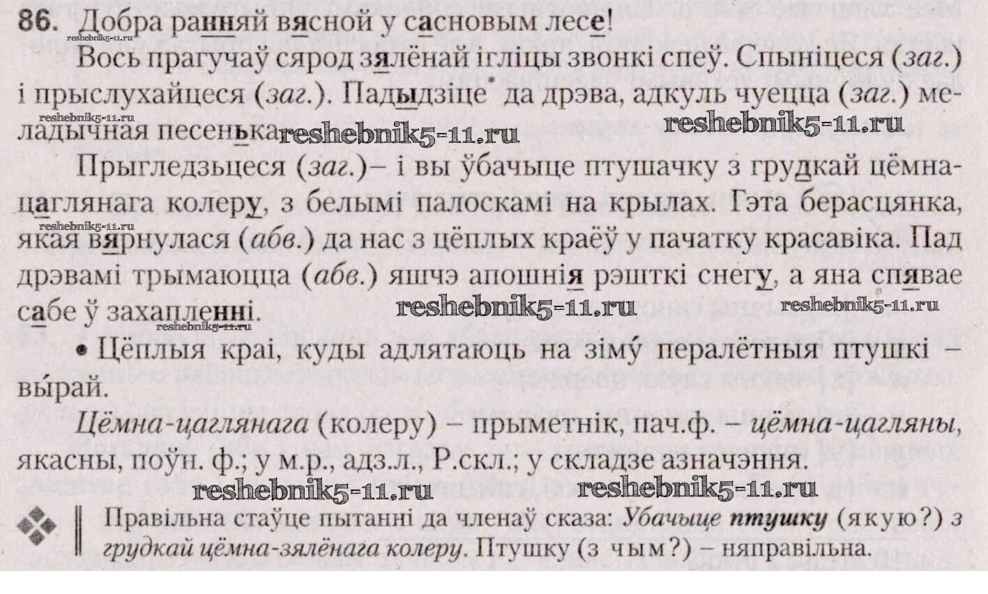 Готовая домашняя работа с ответами по Белорусскому языку за 7 класс Валочка, Язерская Учебник Национальный институт образования 2020 ФГОС - Практыкаванні 86