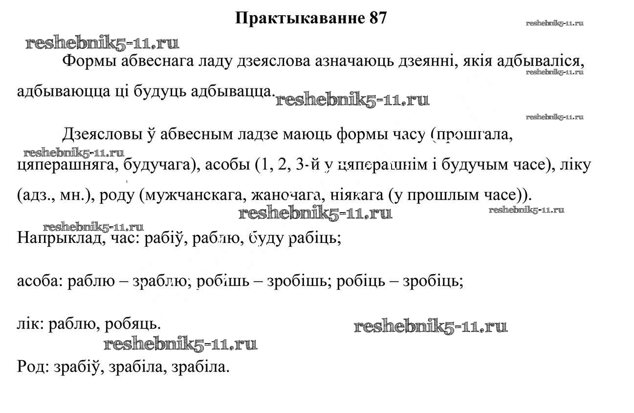 Готовая домашняя работа с ответами по Белорусскому языку за 7 класс Валочка, Язерская Учебник Национальный институт образования 2020 ФГОС - Практыкаванні 87