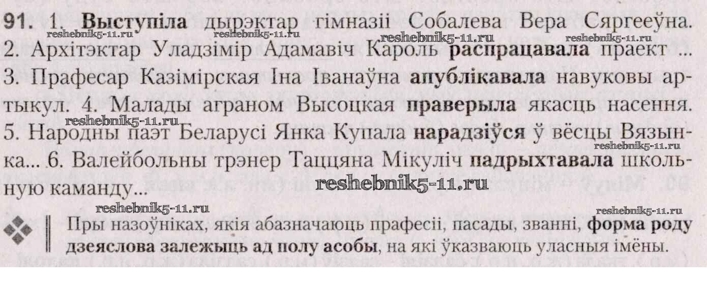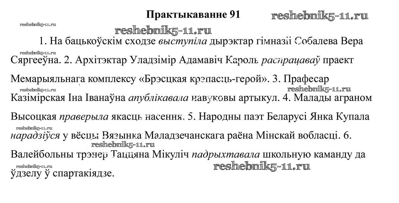 Готовая домашняя работа с ответами по Белорусскому языку за 7 класс Валочка, Язерская Учебник Национальный институт образования 2020 ФГОС - Практыкаванні 91