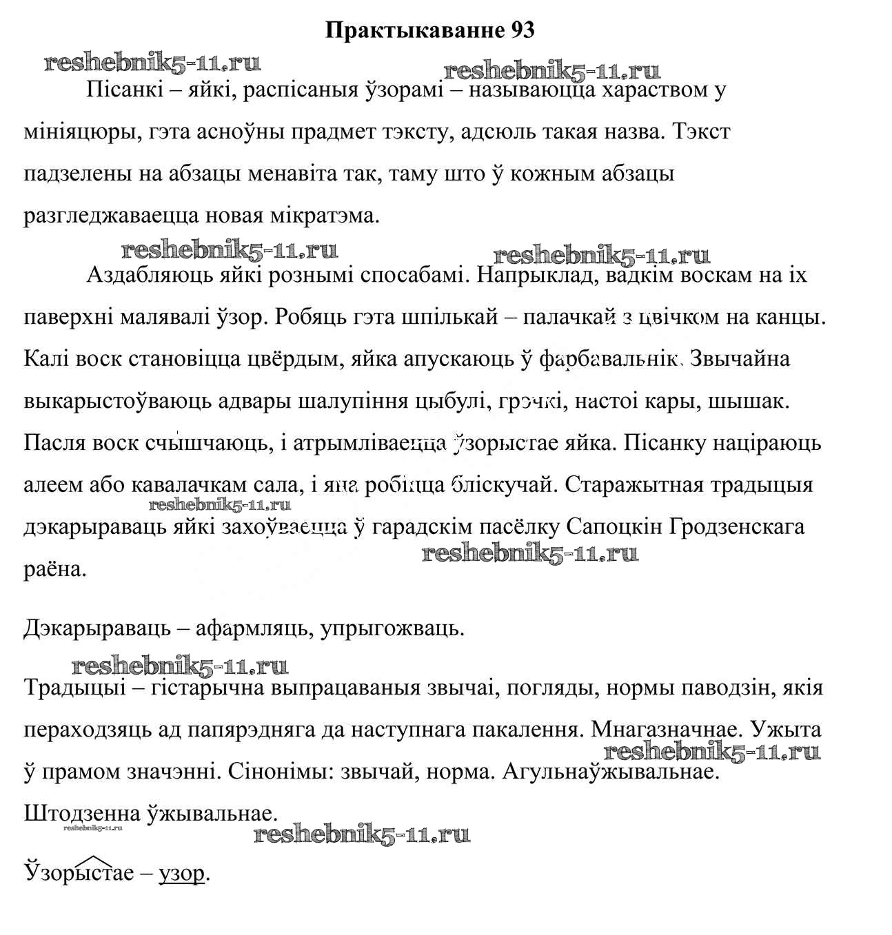 Готовая домашняя работа с ответами по Белорусскому языку за 7 класс Валочка, Язерская Учебник Национальный институт образования 2020 ФГОС - Практыкаванні 93