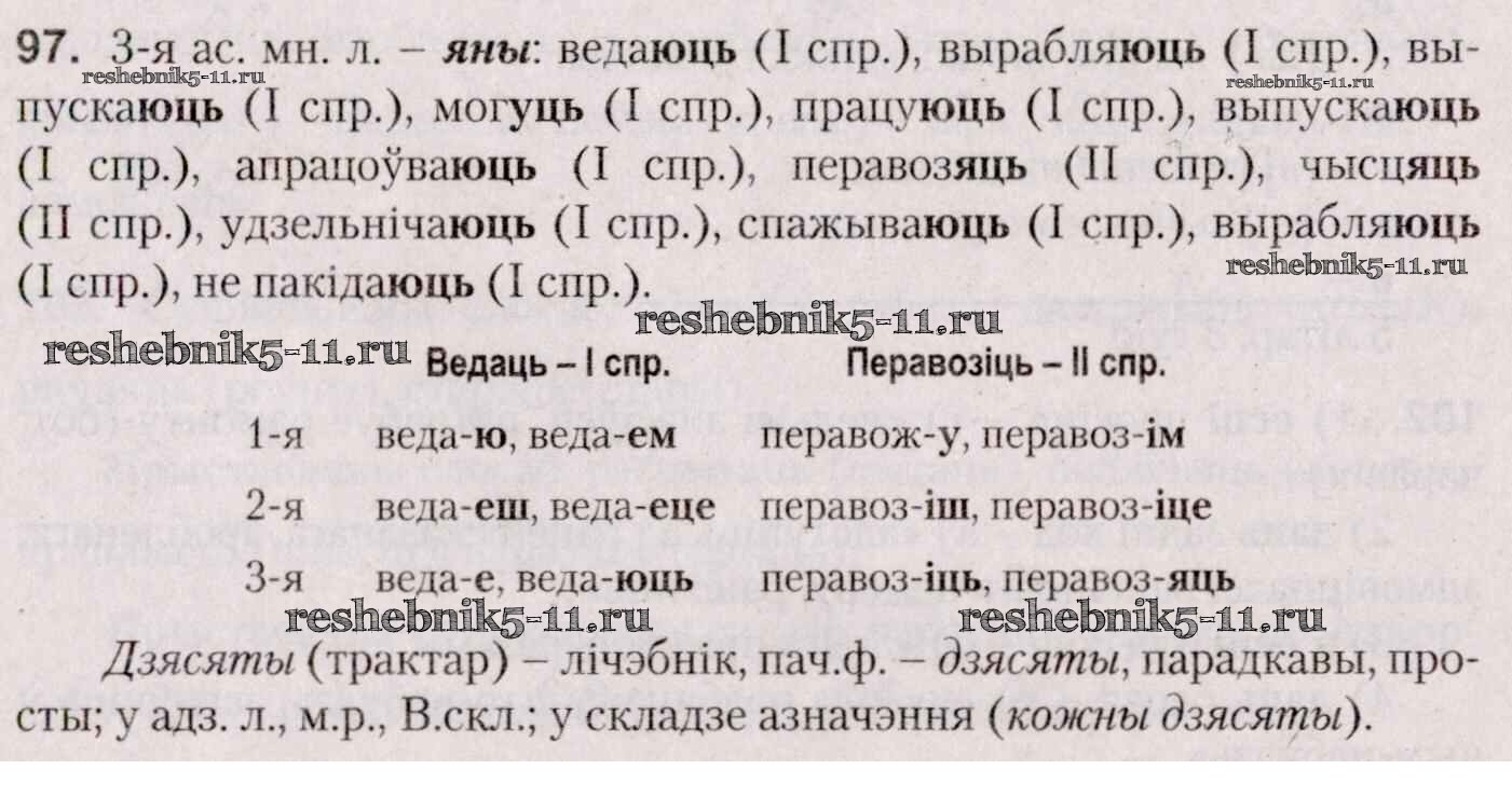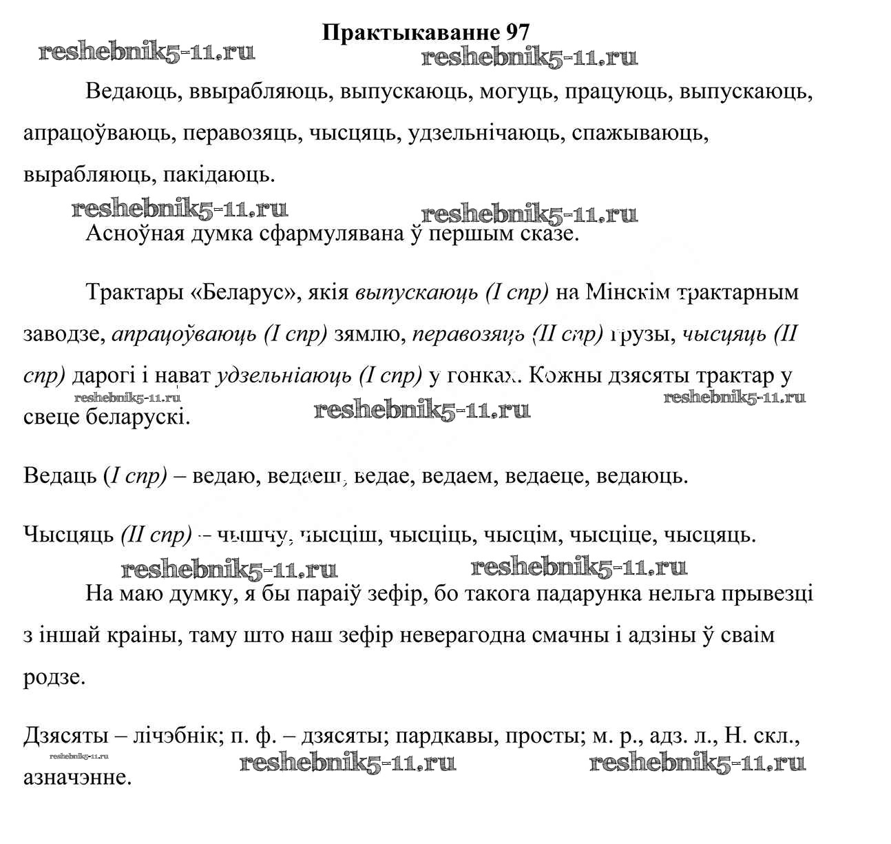 Готовая домашняя работа с ответами по Белорусскому языку за 7 класс Валочка, Язерская Учебник Национальный институт образования 2020 ФГОС - Практыкаванні 97