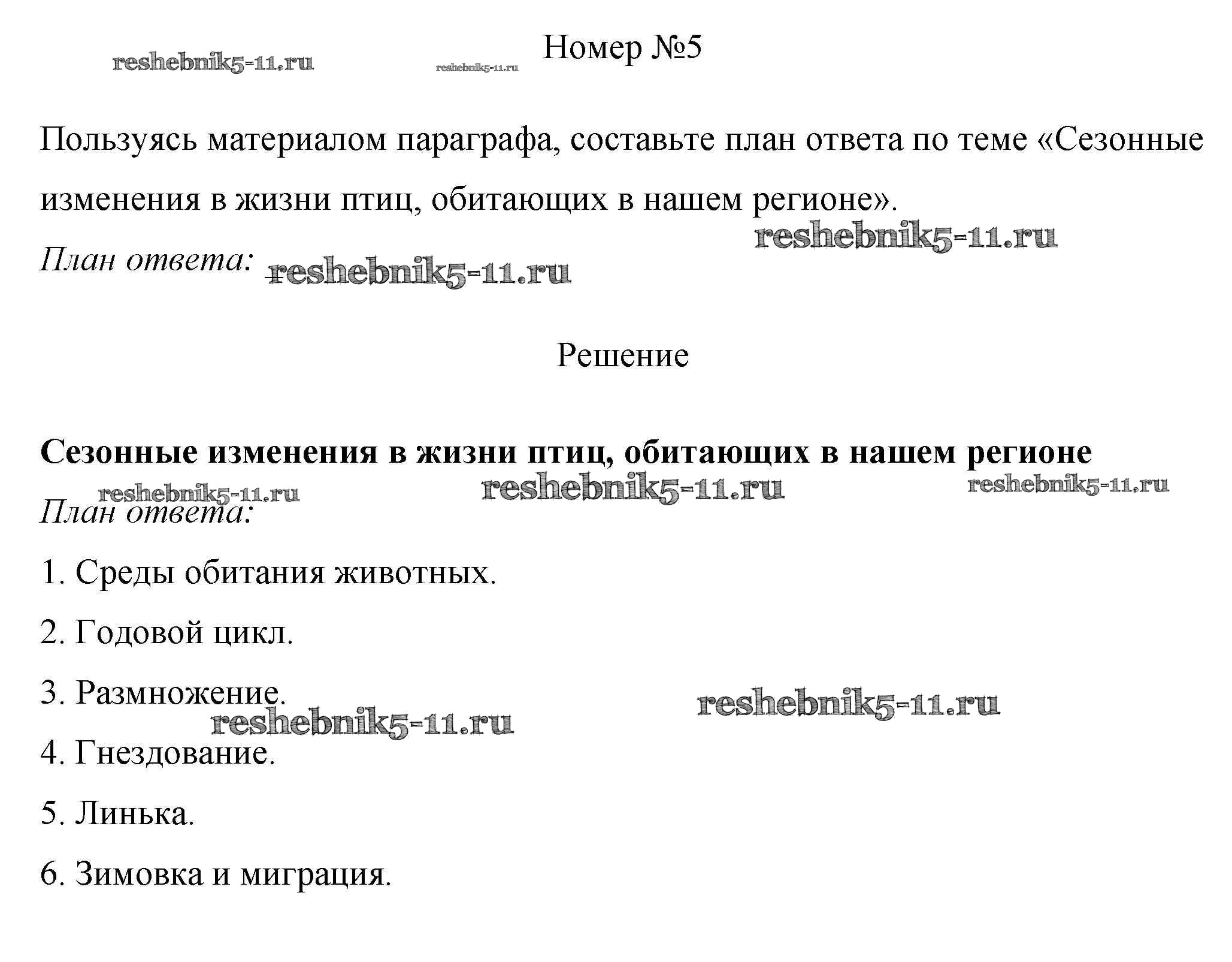 Готовая домашняя работа с ответами по Биологии за 7 класс Пасечник Рабочая тетрадь Линия жизни Просвещение 2016 ФГОС - §2. Среды обитания и сезонные изменения в жизни животных 5
