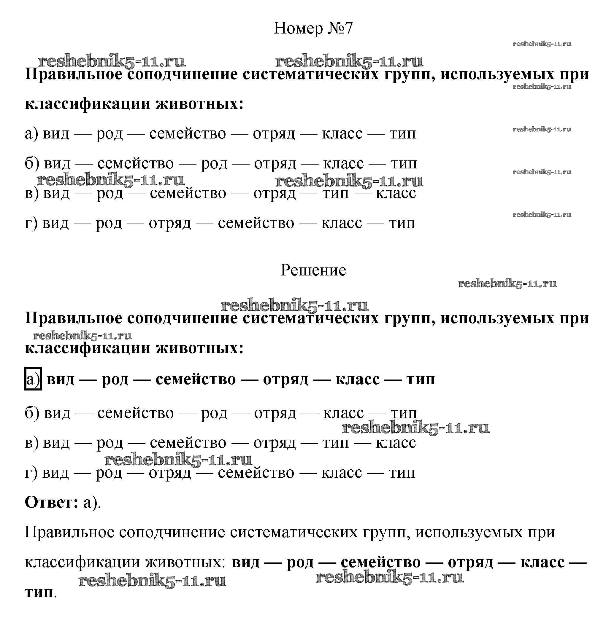 Готовая домашняя работа с ответами по Биологии за 7 класс Пасечник Рабочая тетрадь Линия жизни Просвещение 2016 ФГОС - Задание 1 7