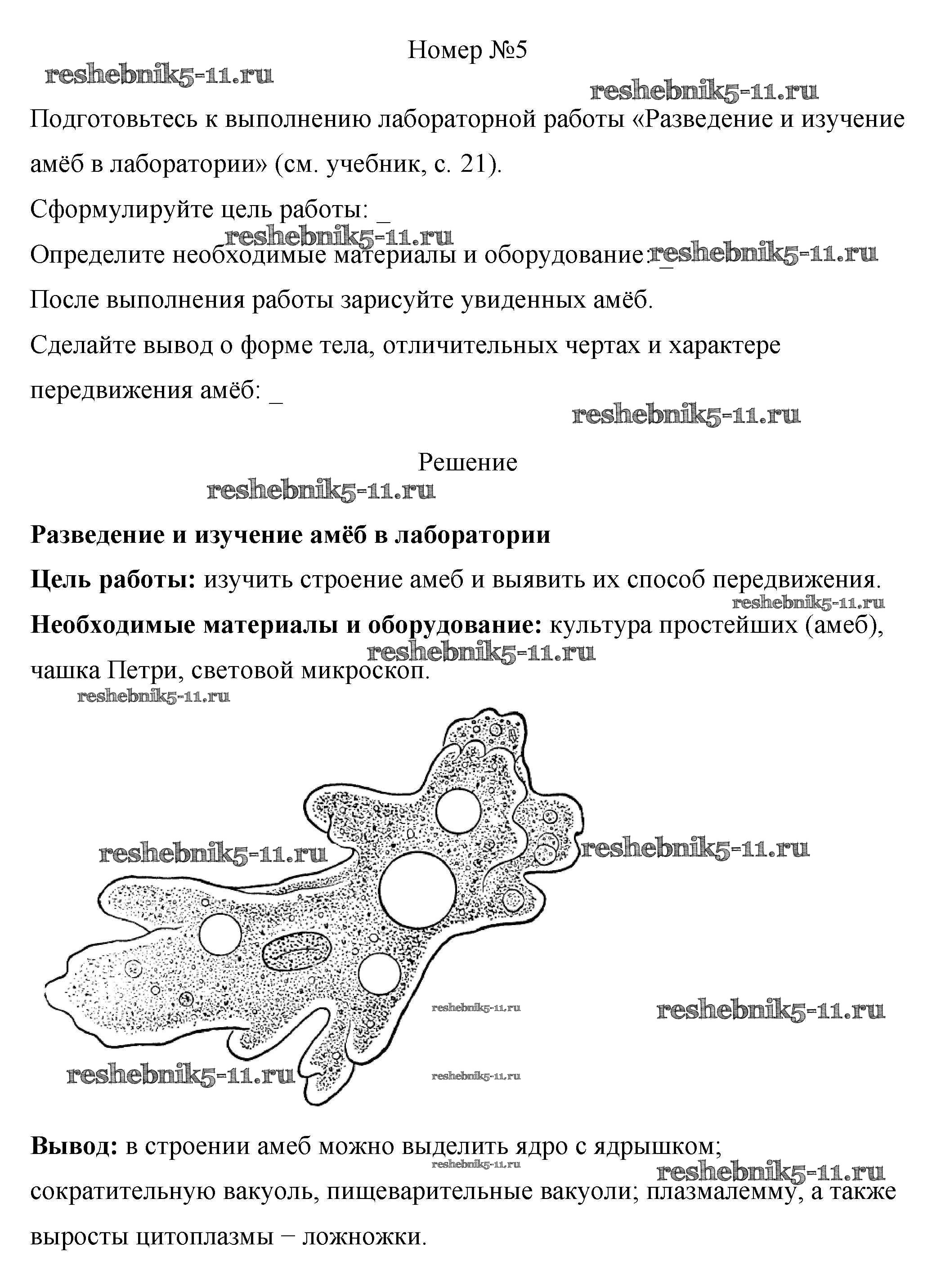 Решебник 2020 / тетрадь 2020 / §3. общая характеристика одноклеточных. корненожки / 5