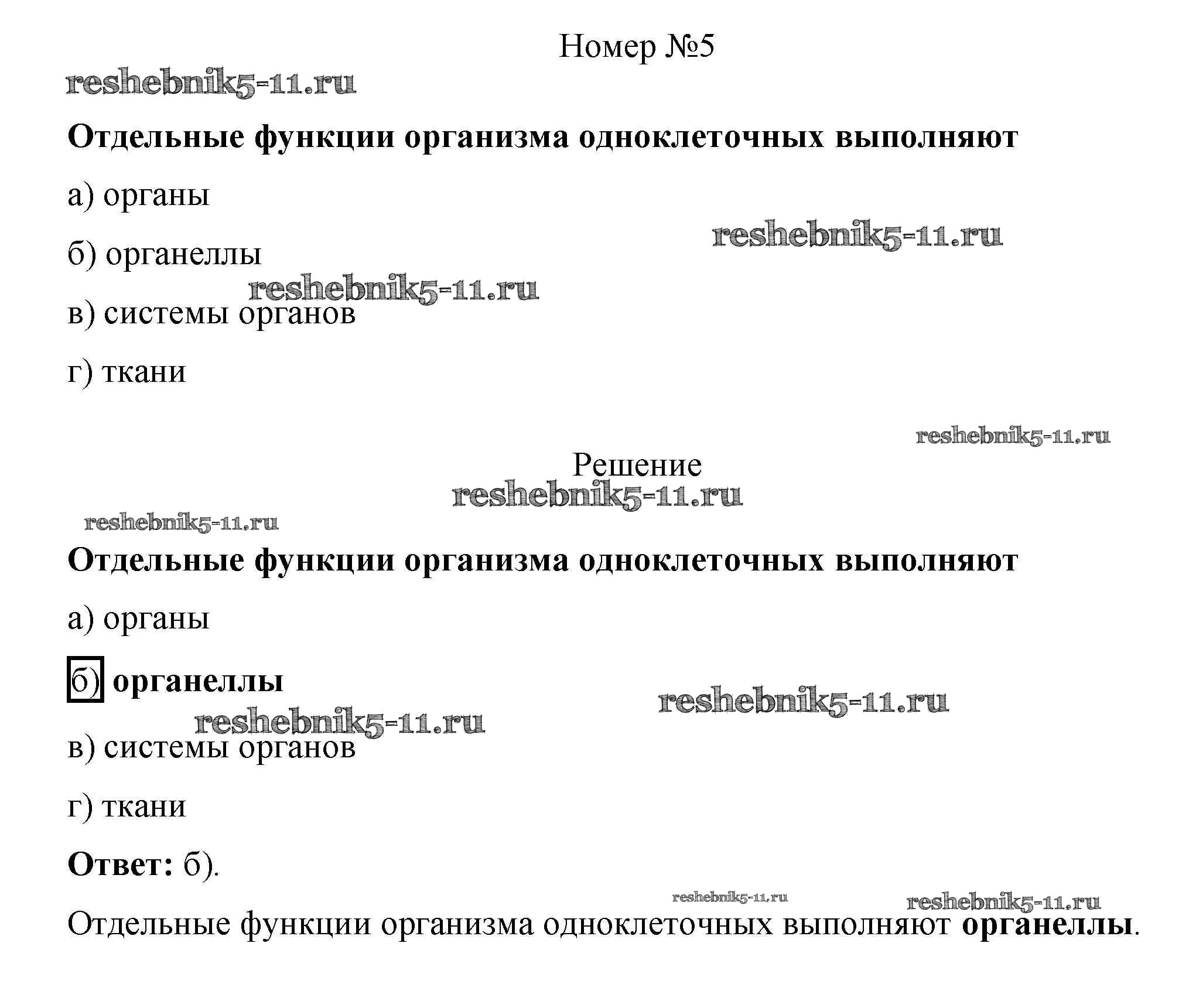 Готовая домашняя работа с ответами по Биологии за 7 класс Пасечник Рабочая тетрадь Линия жизни Просвещение 2016 ФГОС - Тестовый контроль 2 5
