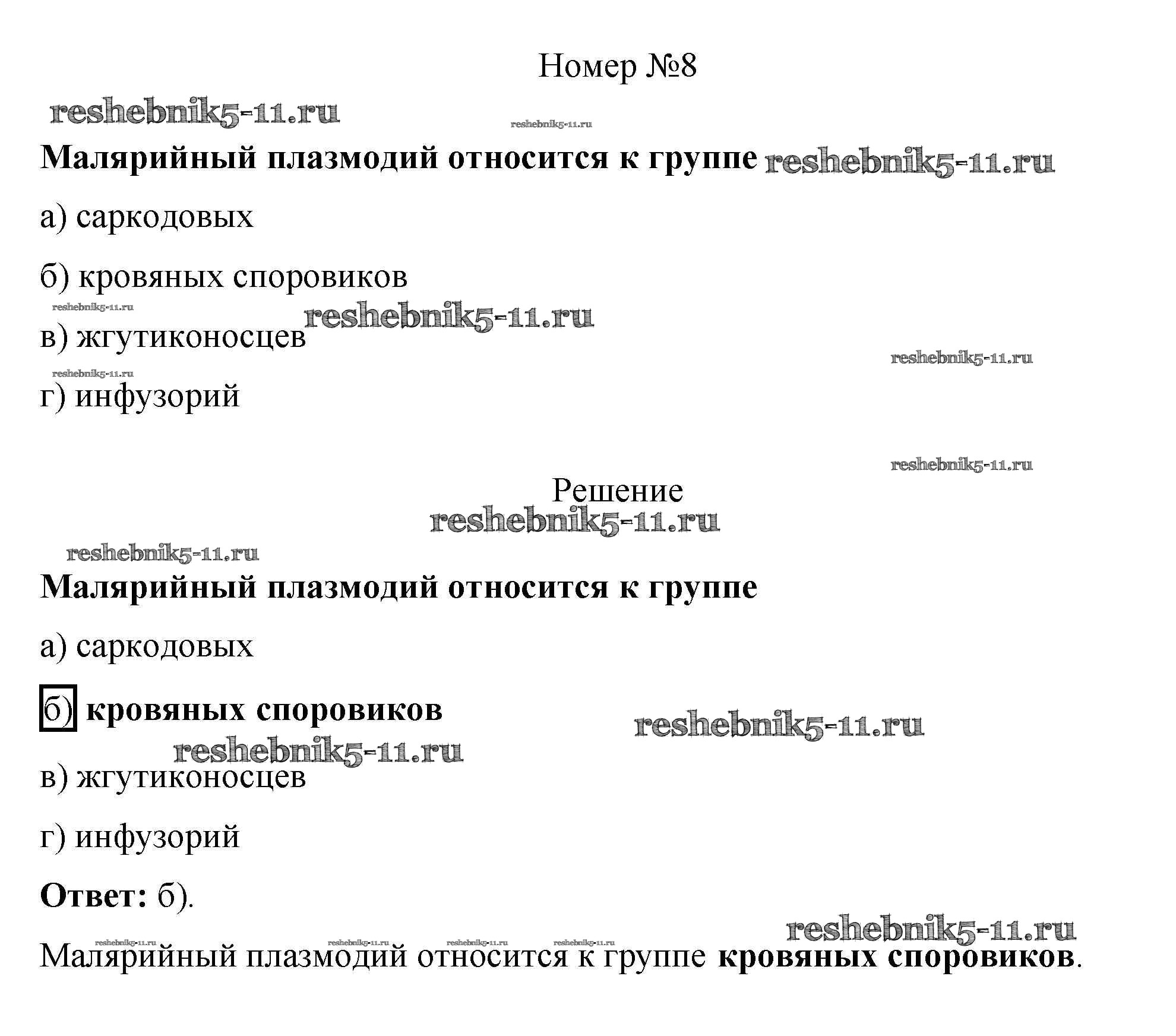 Готовая домашняя работа с ответами по Биологии за 7 класс Пасечник Рабочая тетрадь Линия жизни Просвещение 2016 ФГОС - Тестовый контроль 2 8