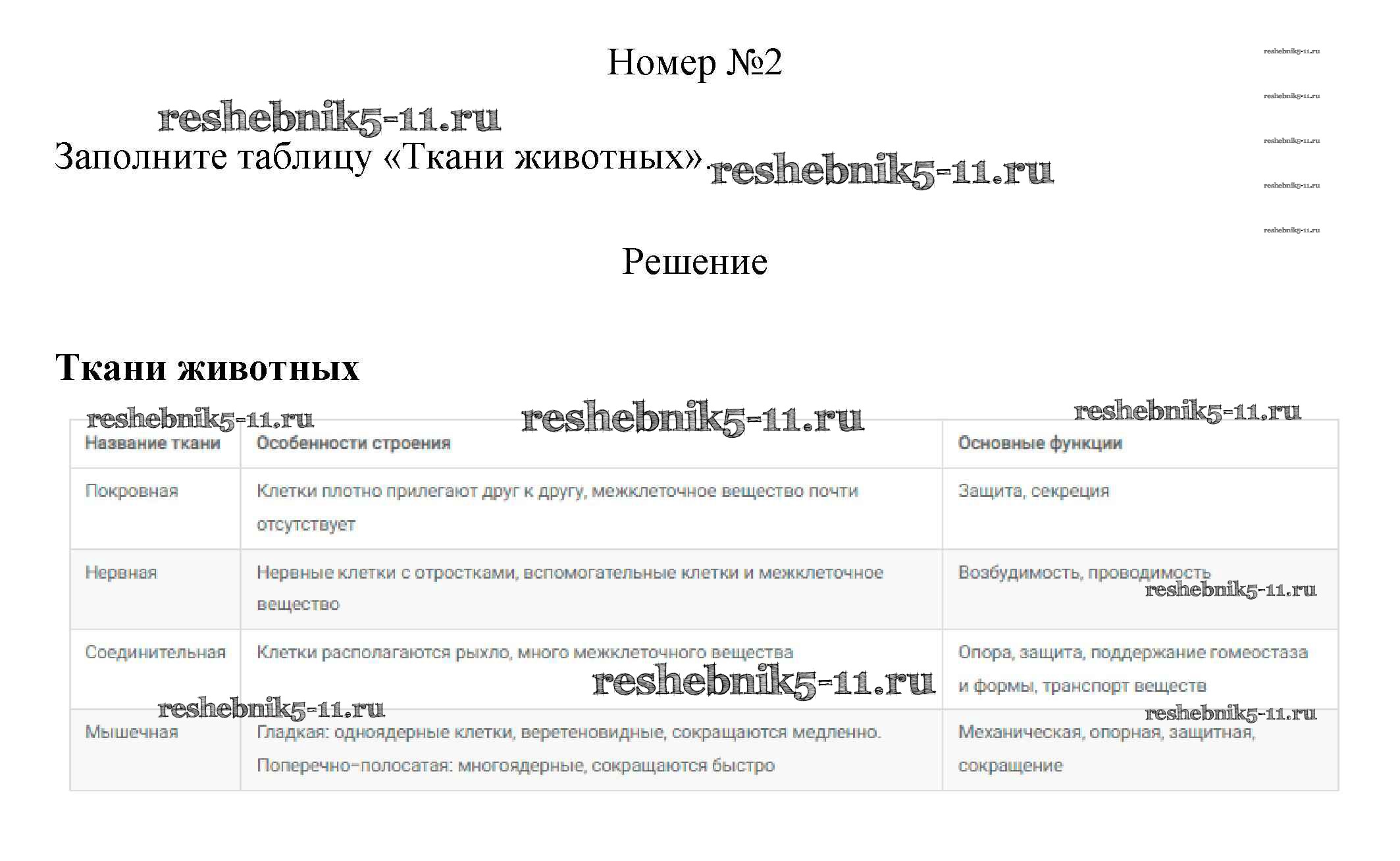 Решебник 2020 / тетрадь 2020 / §6. организм многоклеточного животного / 2