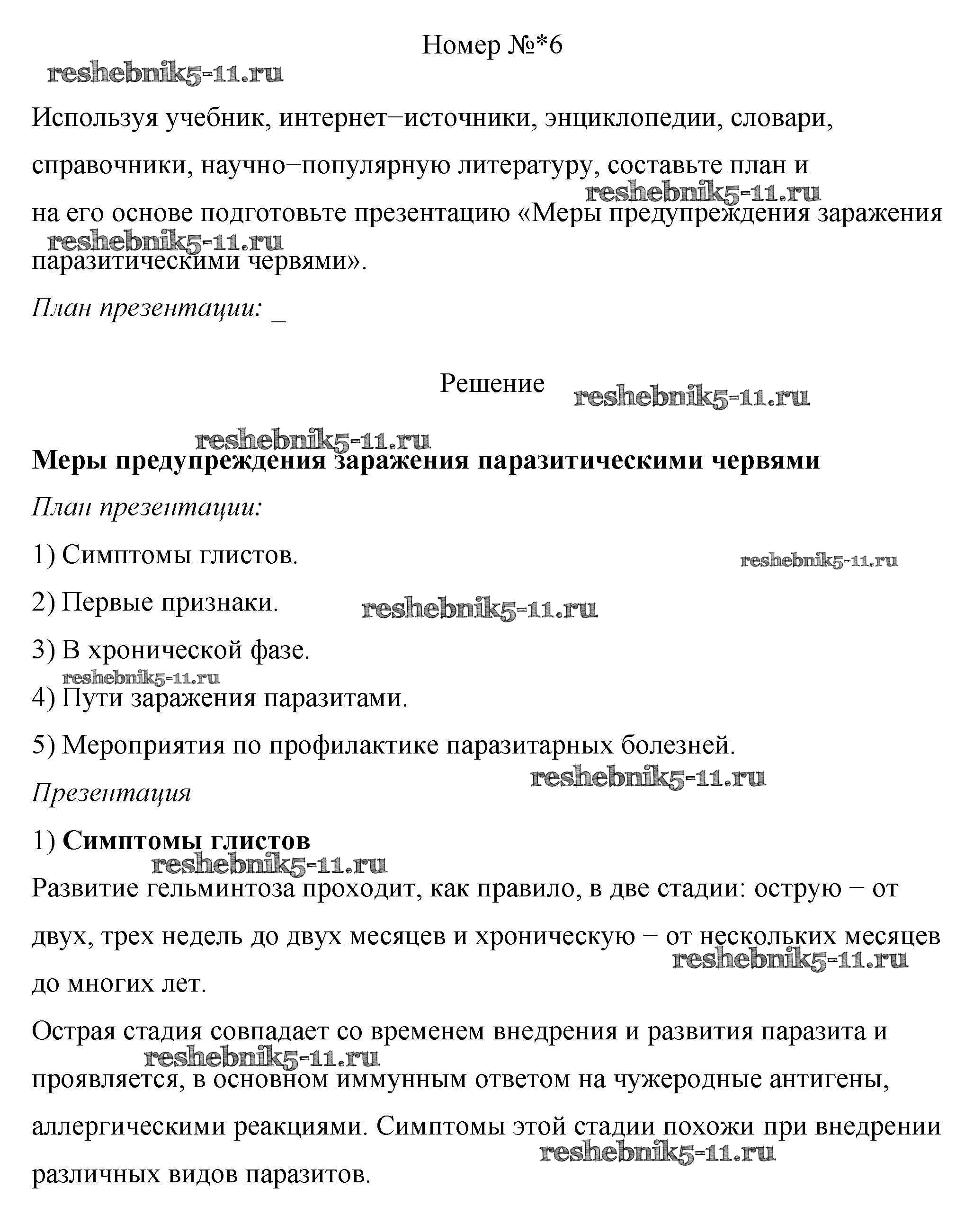 Готовая домашняя работа с ответами по Биологии за 7 класс Пасечник Рабочая тетрадь Линия жизни Просвещение 2016 ФГОС - §10. Тип Круглые черви и тип Кольчатые черви 6