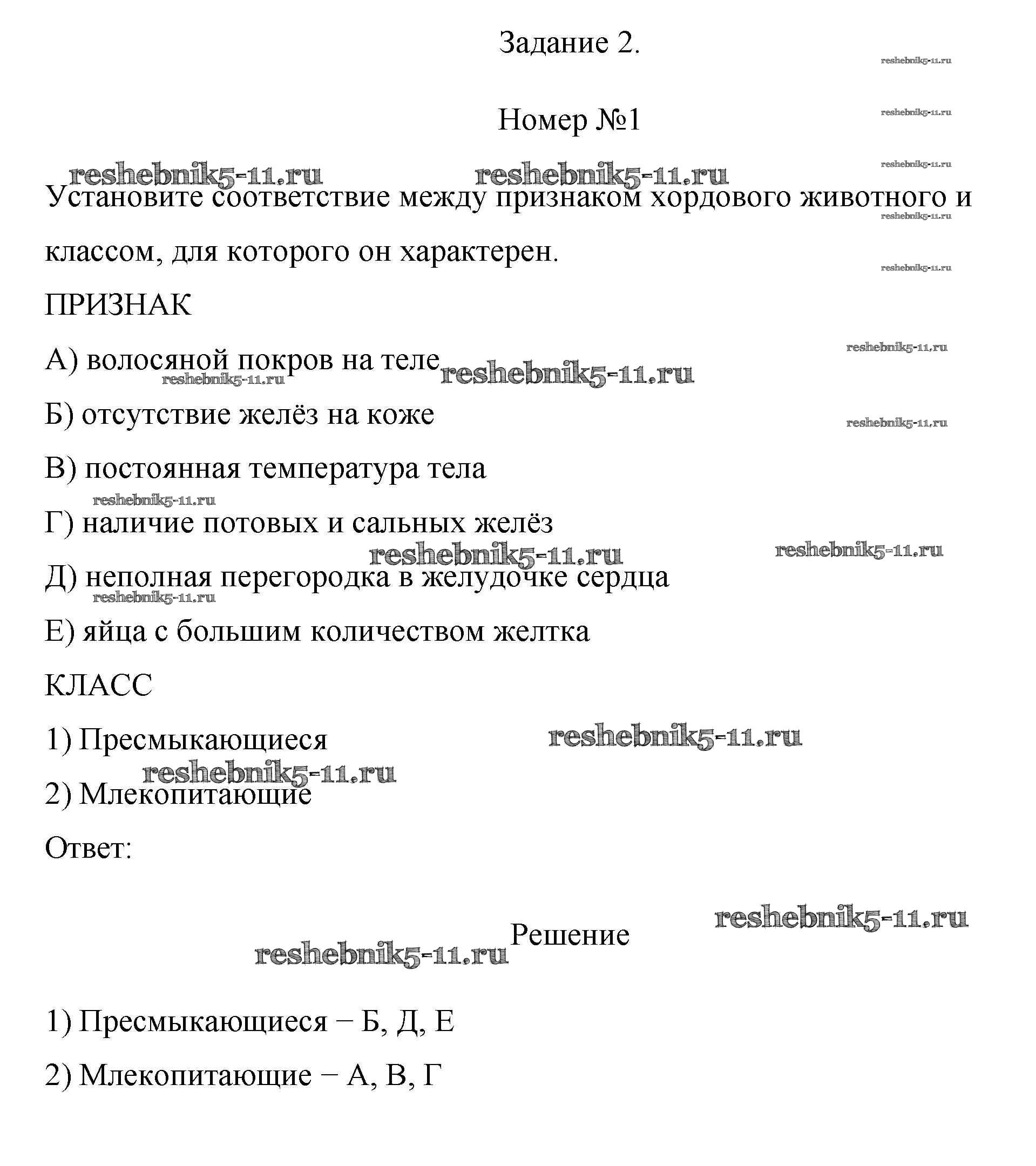 Готовая домашняя работа с ответами по Биологии за 7 класс Пасечник Рабочая тетрадь Линия жизни Просвещение 2016 ФГОС - Задание 2 1