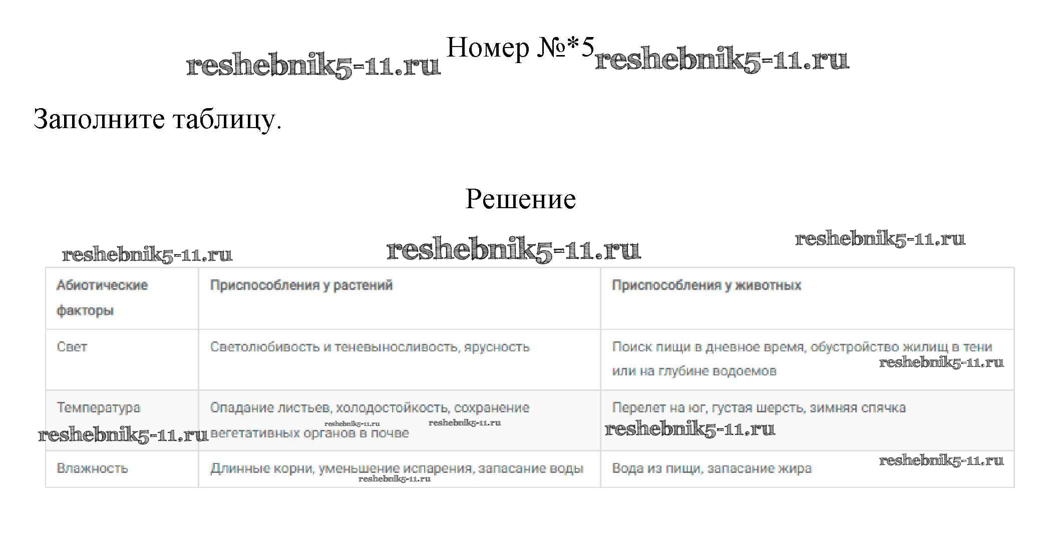Решебник 2020 / тетрадь 2020 / §29. среда обитания организмов. экологические факторы / 5