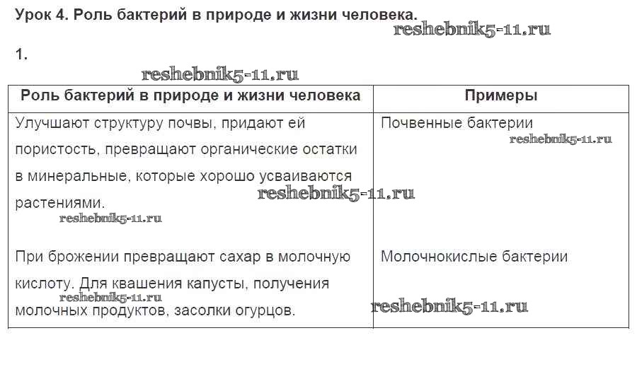 Решебник 2016 / тетрадь 2016 / §4. роль бактерий в природе и жизни человека / 1