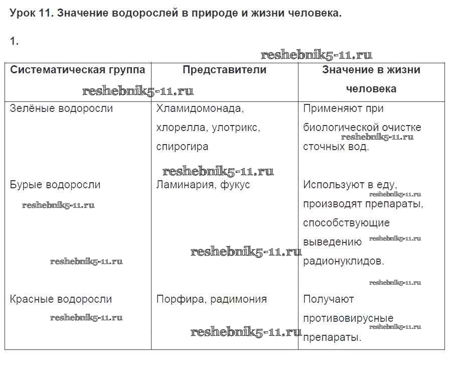 Решебник 2016 / тетрадь 2016 / §11. значение водорослей в природе и жизни человека / 1