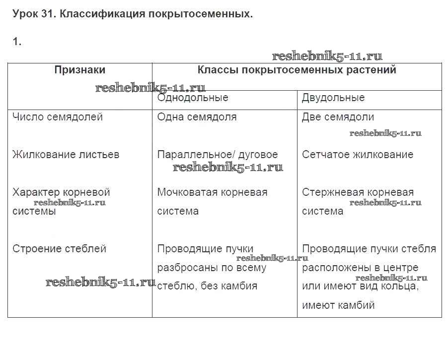 Решебник 2016 / тетрадь 2016 / §31. классификация покрытосеменных / 1