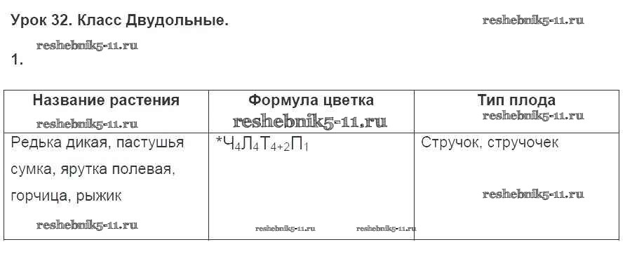 Готовая домашняя работа с ответами по Биологии за 7 класс Пасечник Рабочая тетрадь Линия жизни Просвещение 2016 ФГОС - §32. Класс Двудольные 1