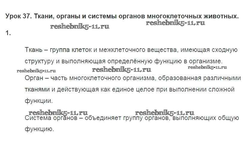 Решебник 2016 / тетрадь 2016 / §37. ткани, органы и системы органов многоклеточных животных / 1