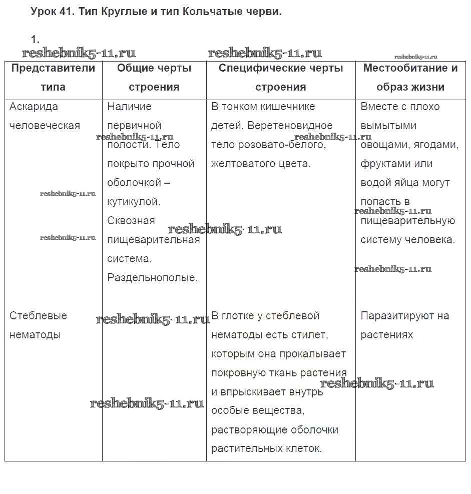 Решебник 2016 / тетрадь 2016 / §41. тип Круглые и тип Кольчатые черви / 1