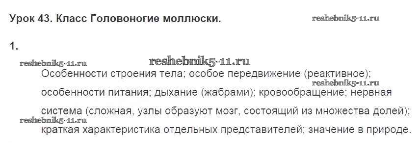 Решебник 2016 / тетрадь 2016 / §43. класс Головоногие моллюски / 1