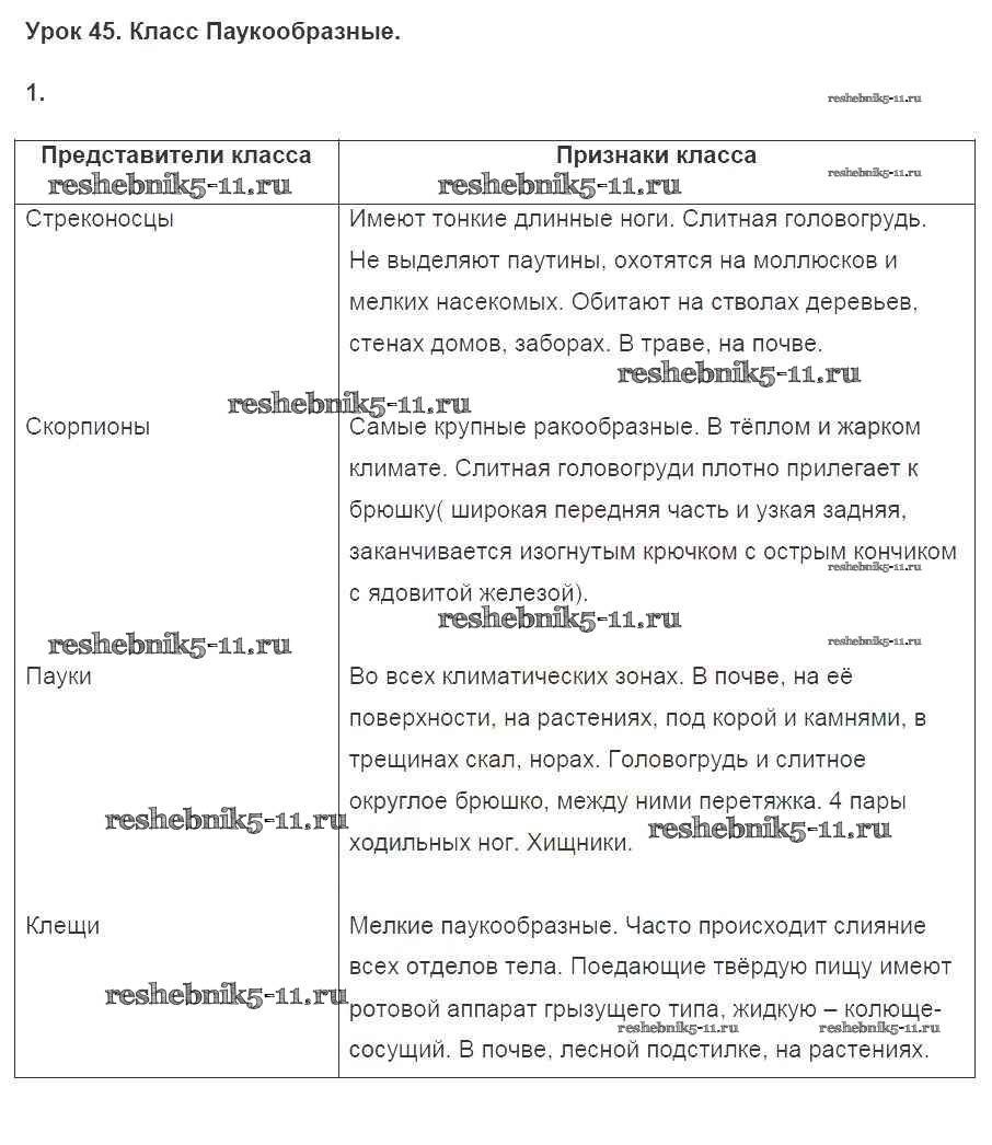 Решебник 2016 / тетрадь 2016 / §45. класс Паукообразные / 1