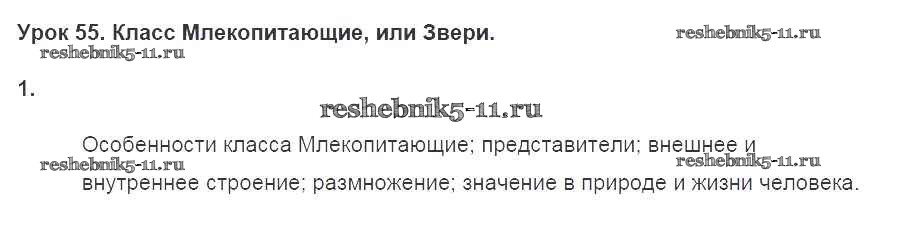 Решебник 2016 / тетрадь 2016 / §55. класс Млекопитающие, или Звери / 1