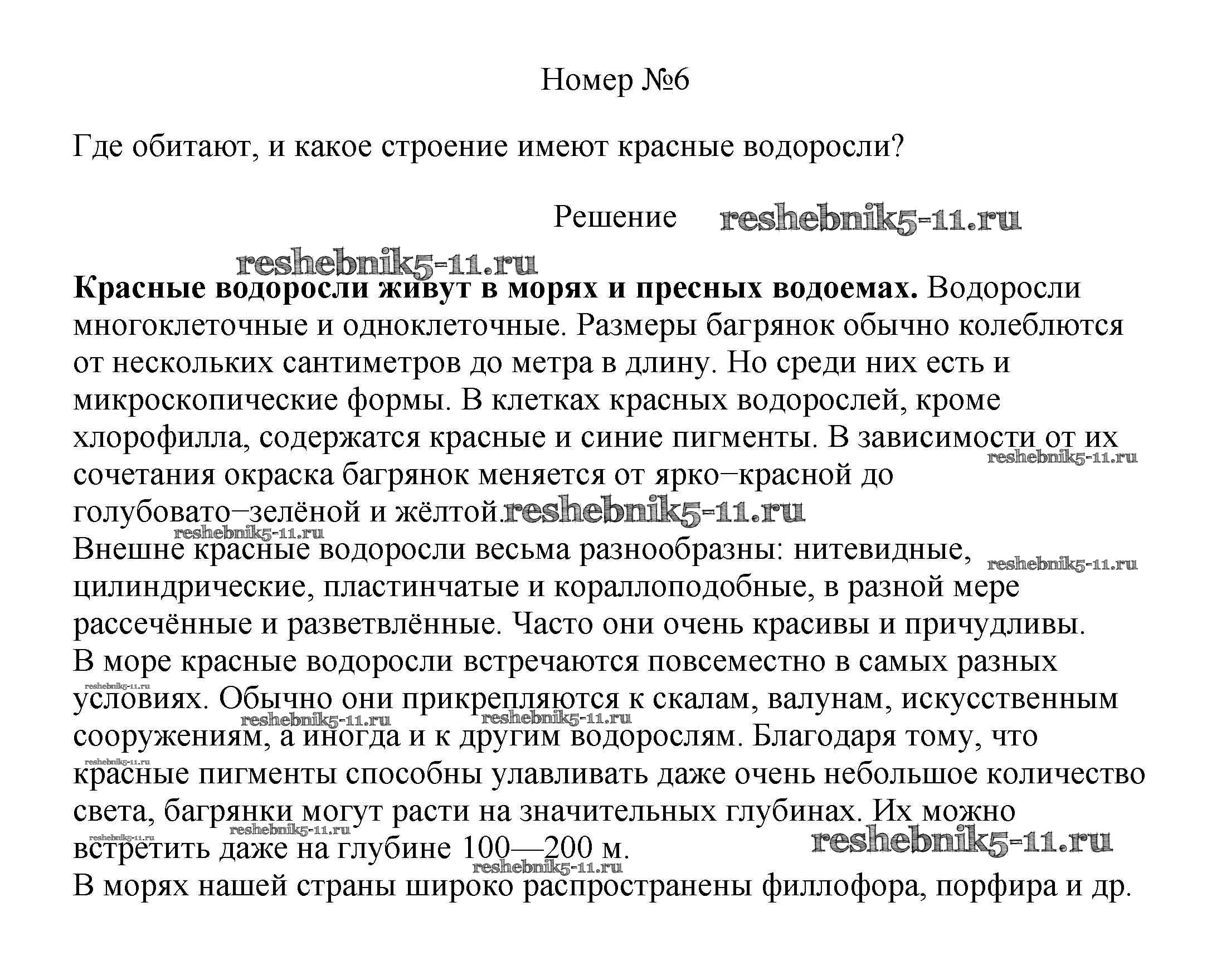 Биология за 7 класс Пасечник Учебник Линейный курс Дрофа вопрос 6