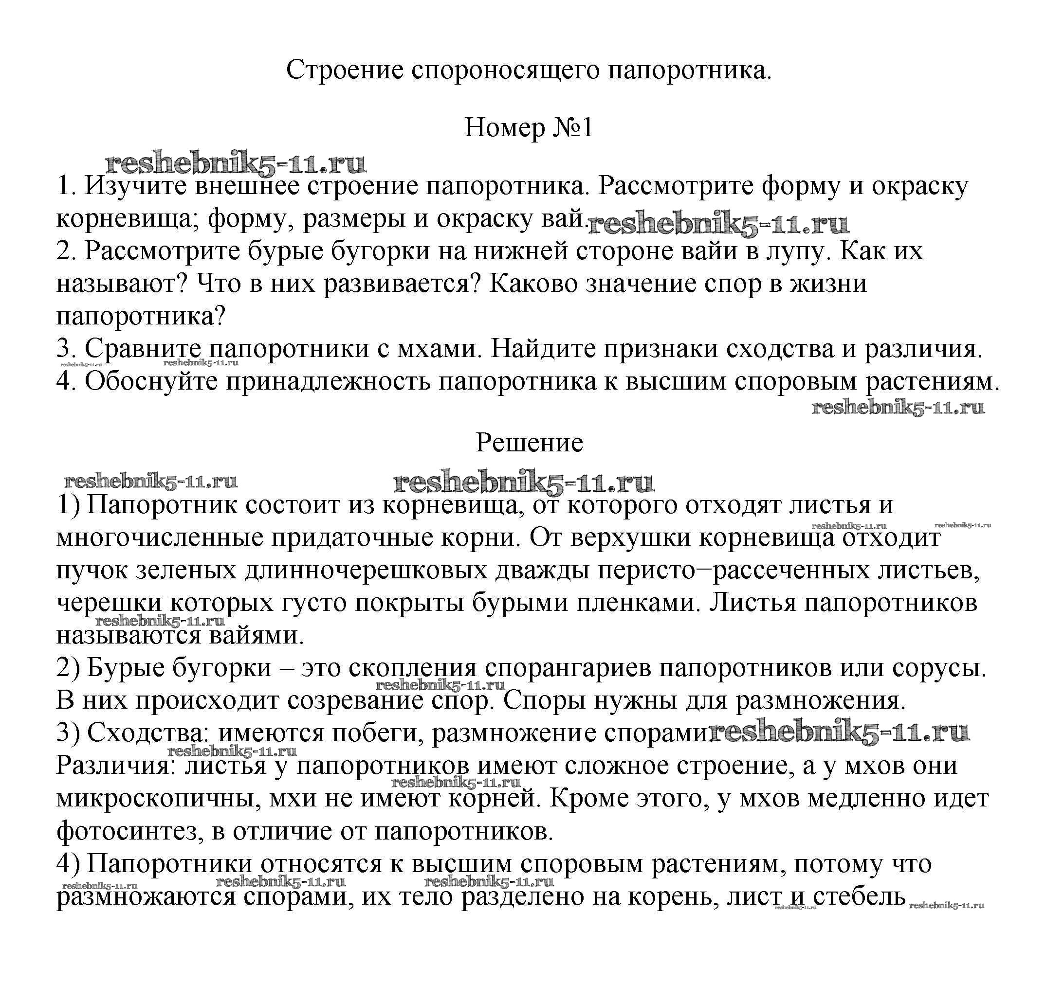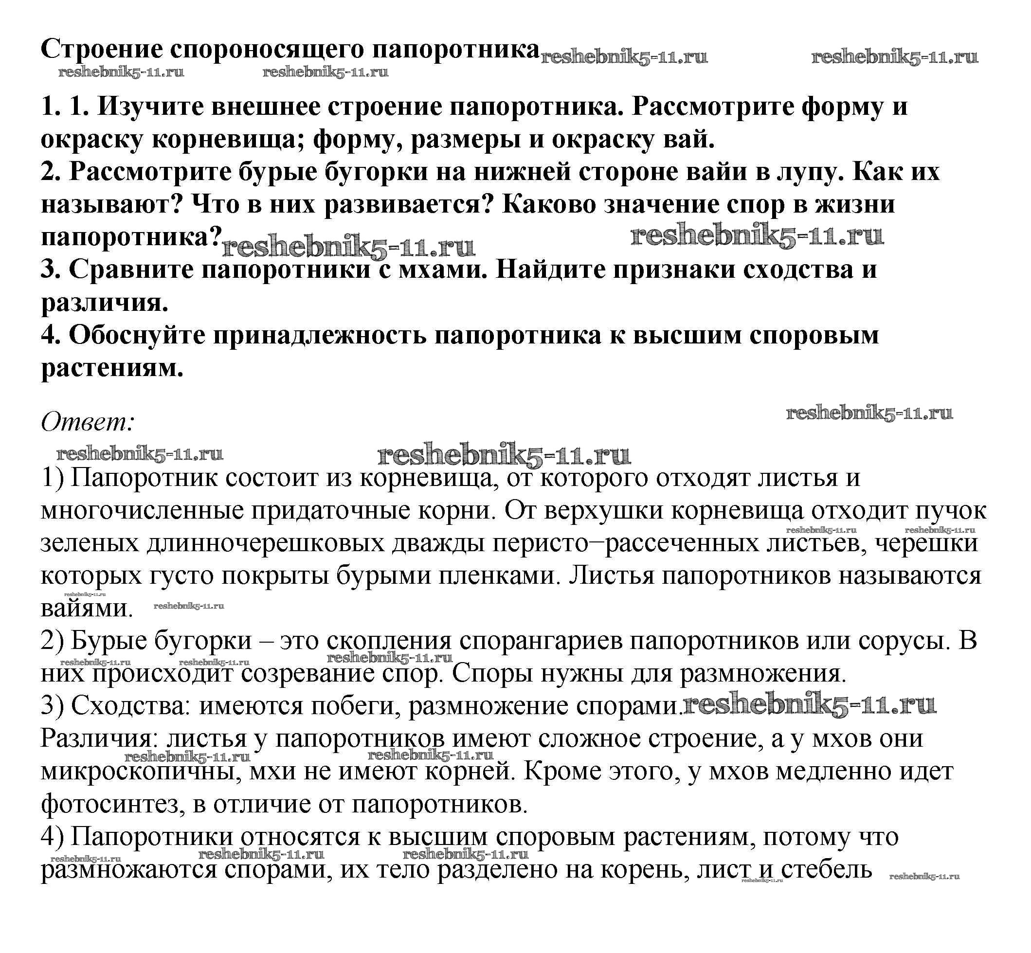 Решебник №1 / §4 / строение спороносящего папоротника / 1
