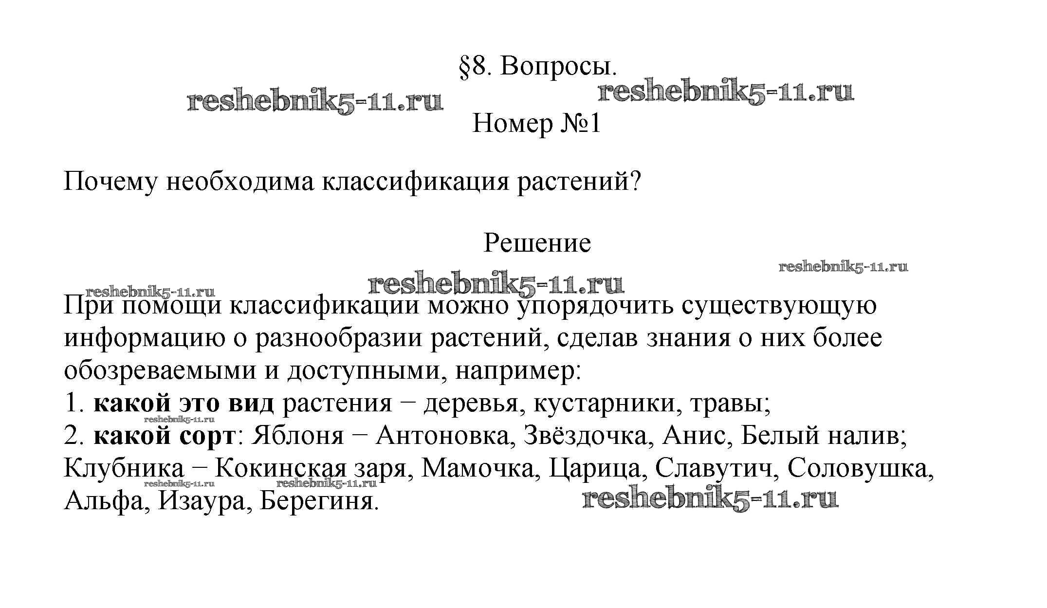 Готовая домашняя работа с ответами по Биологии за 7 класс Пасечник Учебник Линейный курс Дрофа 2020 ФГОС - Вопросы 1