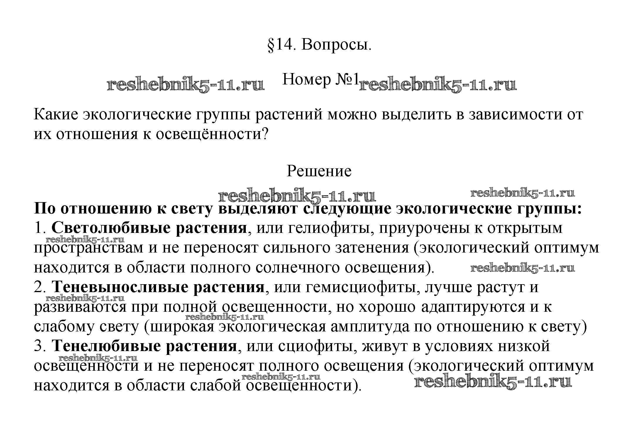 Готовая домашняя работа с ответами по Биологии за 7 класс Пасечник Учебник Линейный курс Дрофа 2020 ФГОС - Вопросы 1