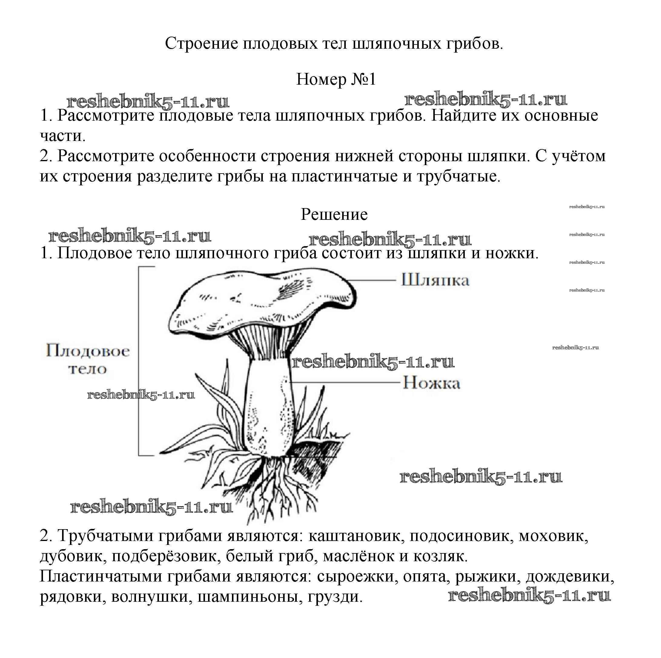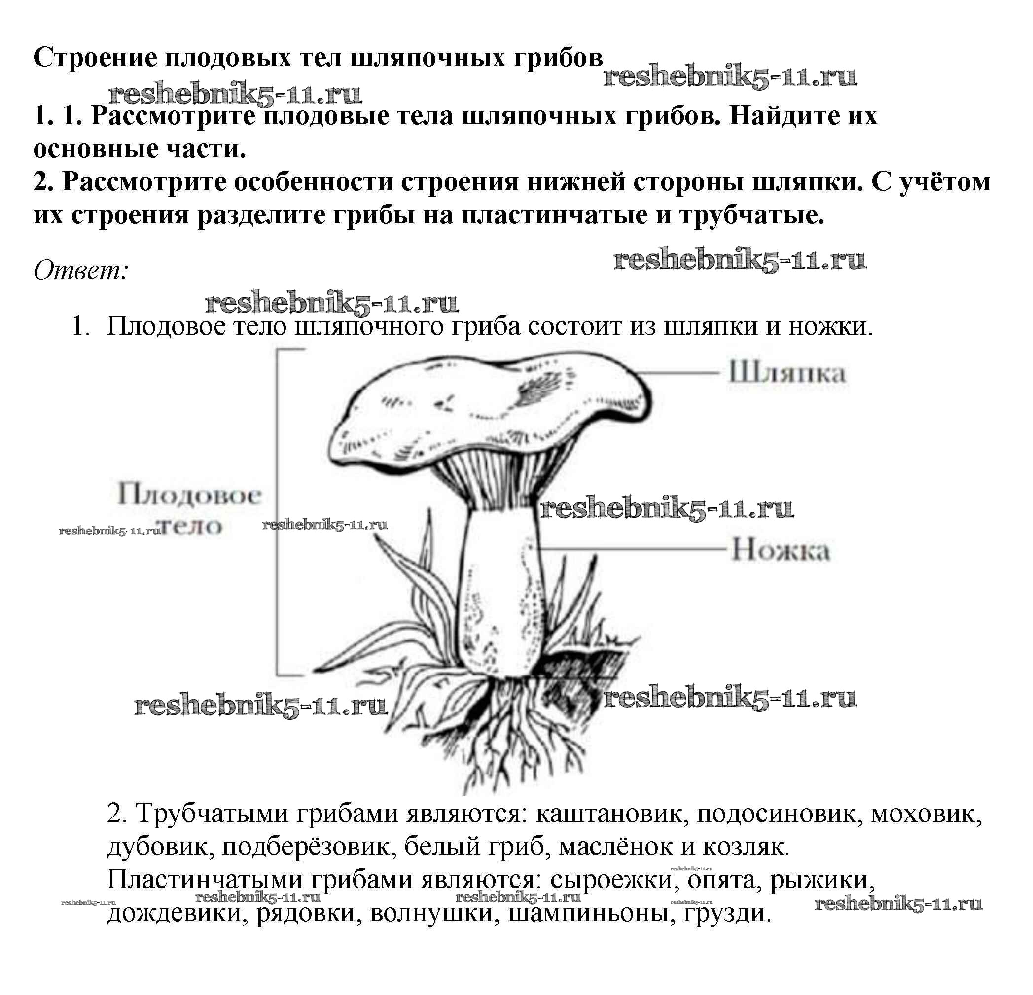 Решебник №1 / §20 / строение плодовых тел шляпочных грибов / 1