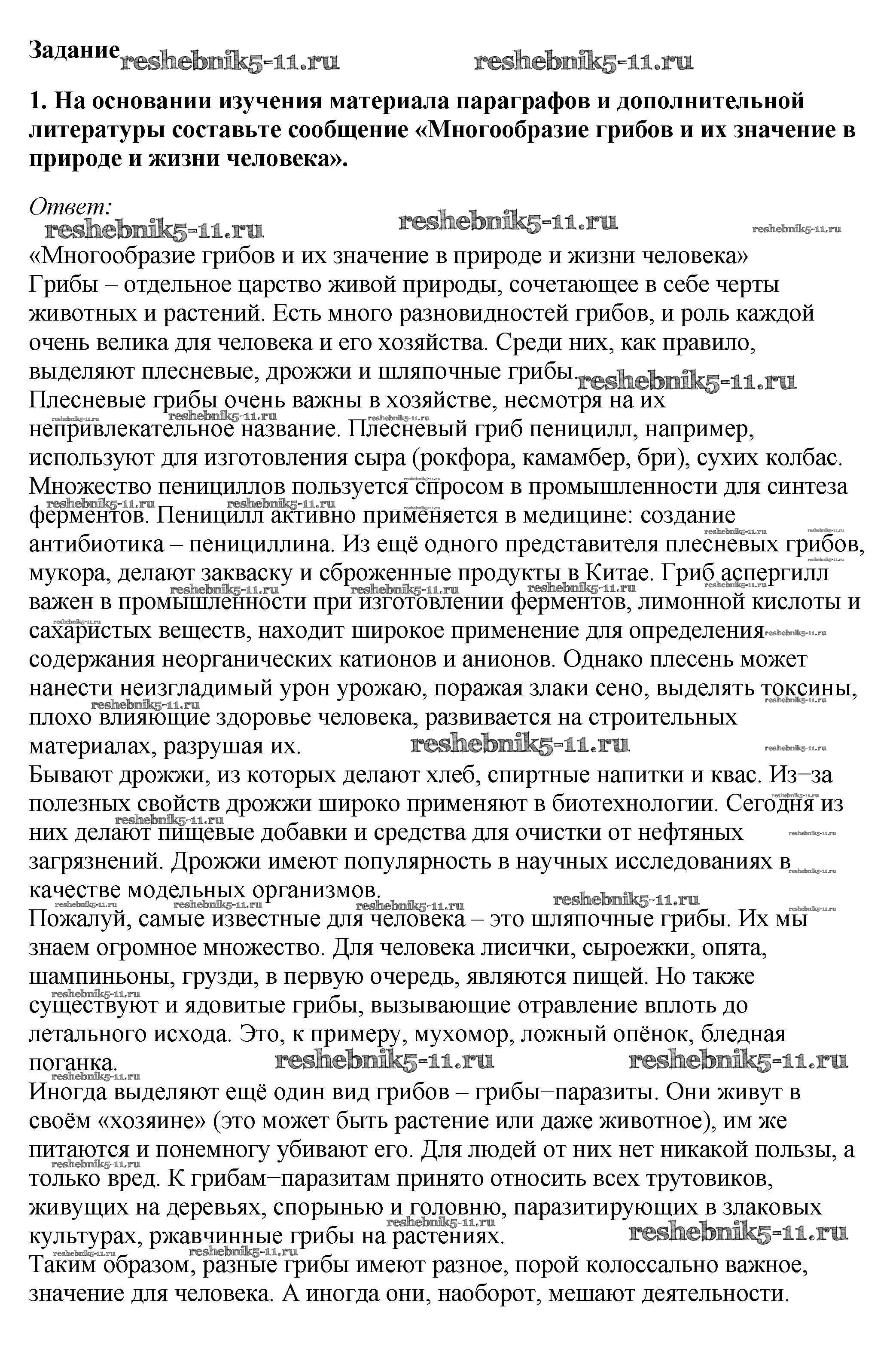 Биология за 7 класс Пасечник Учебник Линейный курс Дрофа задание 1