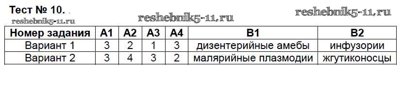 Готовая домашняя работа с ответами по Биологии за 7 класс Артемьева Контрольно-измерительные материалы (КИМ) ВАКО 2018 ФГОС - Тесты 10