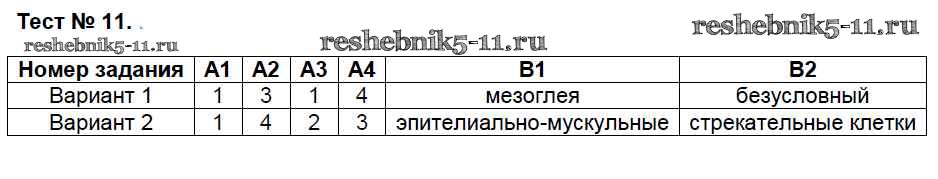 Готовая домашняя работа с ответами по Биологии за 7 класс Артемьева Контрольно-измерительные материалы (КИМ) ВАКО 2018 ФГОС - Тесты 11