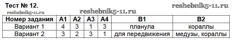 Готовая домашняя работа с ответами по Биологии за 7 класс Артемьева Контрольно-измерительные материалы (КИМ) ВАКО 2018 ФГОС - Тесты 12