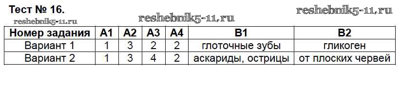 Готовая домашняя работа с ответами по Биологии за 7 класс Артемьева Контрольно-измерительные материалы (КИМ) ВАКО 2018 ФГОС - Тесты 16
