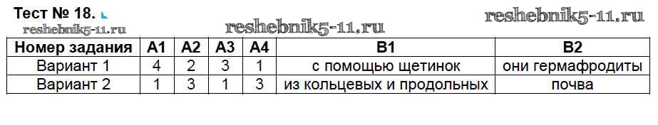 Готовая домашняя работа с ответами по Биологии за 7 класс Артемьева Контрольно-измерительные материалы (КИМ) ВАКО 2018 ФГОС - Тесты 18