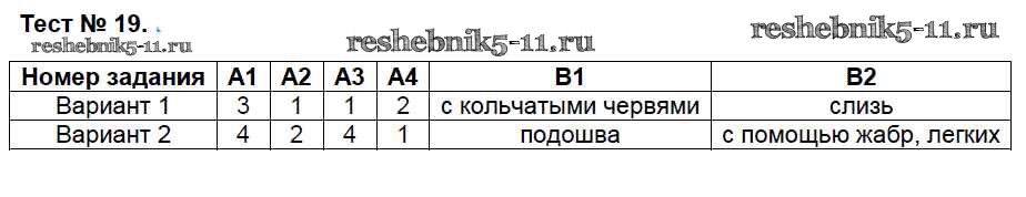 Готовая домашняя работа с ответами по Биологии за 7 класс Артемьева Контрольно-измерительные материалы (КИМ) ВАКО 2018 ФГОС - Тесты 19